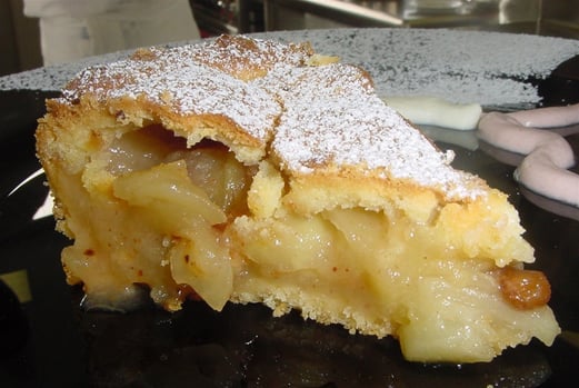 Der TIPP: Vor dem Anschneiden des Apfelkuchens mindestens 1/4 Stunde überkühlen lassen.